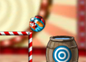 a játék célja: vágd el úgy a láncokat, hogy a gömbbé kuporodott bohóc beleessen a hordóba